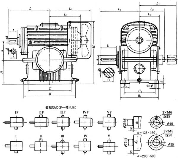 TPG80、TPG100、通用型包絡蝸桿減速機形式及外形尺寸(Ⅳ—Ⅵ)