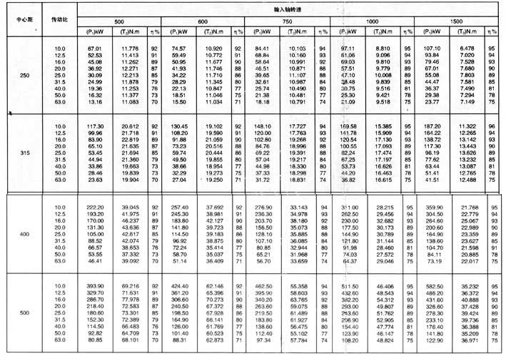 平面包絡環面蝸桿減速器額定輸入軸功率表