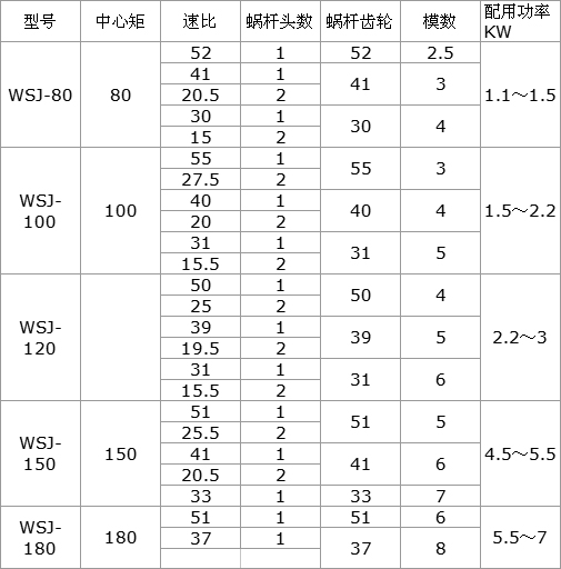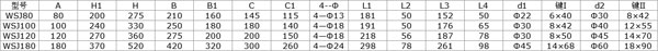 WSJ減速器主要參數表